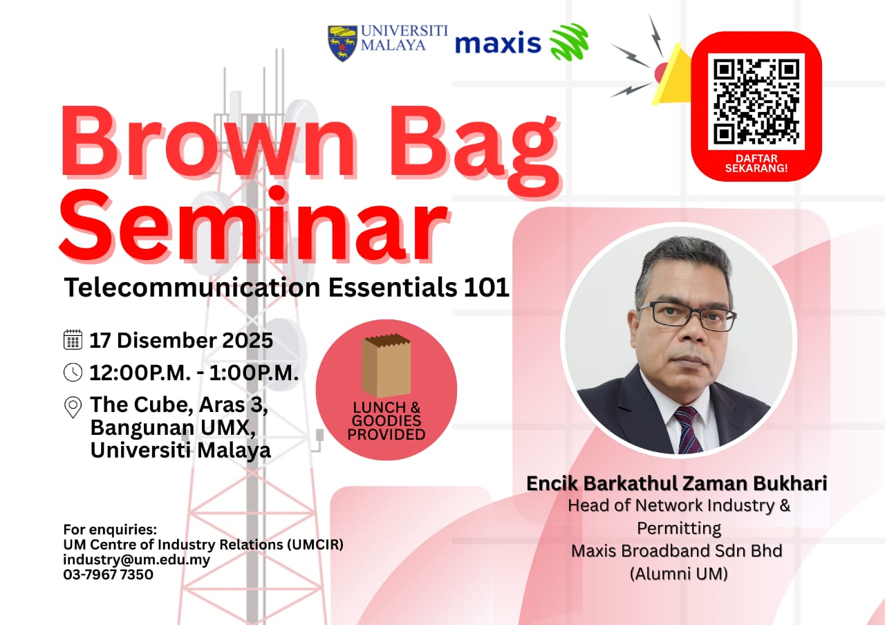 UM Centre of Industry Relations (UMCIR) would like to extend the invitation for Maxis Brown Bag Seminar.